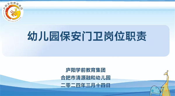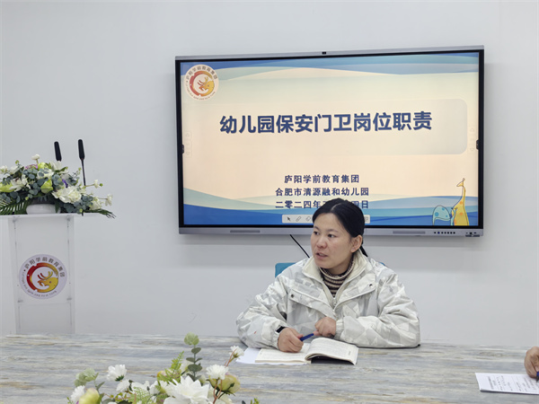 幼儿园保安、门卫的岗位职责非常重要,保安门卫的工作直接关系到幼儿的生命安全和身体健康,是幼儿园正常运作的重要保障,承担着保护幼儿安全、维护校园秩序、保障教学活动正常进行等多重责任。为切实加强幼儿园安保工作,提升保安、门卫业务素质,进一步保障师幼安全,2024年3月14日在后勤主任王露露的组织下合肥市清源融和幼儿园开展了保安门卫岗位职责培训。