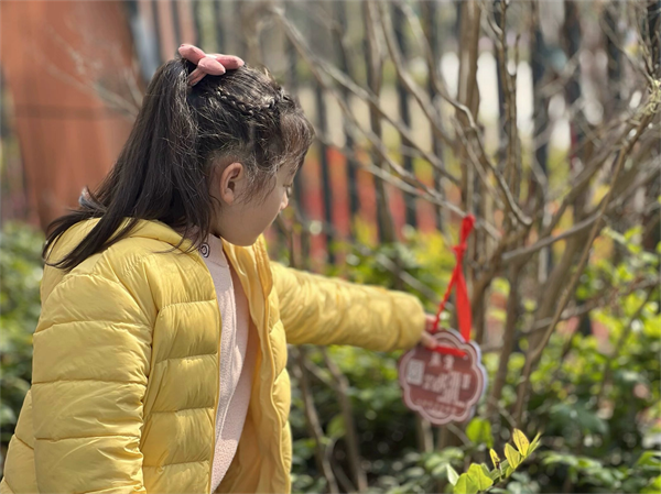 老师带领着孩子们找到自己所认领的小树,进行小树挂牌,牌子上有专属二维码,那是孩子对小树的介绍,欢迎大家来我们幼儿园听一听哦。