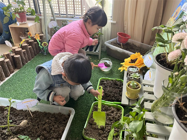 为了更有利于幼儿去观察,让幼儿更好地走进自然,培养幼儿对植物的兴趣,孩子们与老师一起创设了丰富的植物角,为幼儿园增添了一份生机,充分感受到春天的美丽。幼儿在老师的指导下学习照料、管理植物,用自己的方式来记录植物的生长过程。