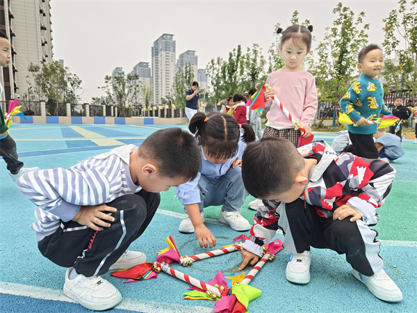 本次活动是以五彩花棒的多样玩法为主,让每一个孩子在自主探索中享受游戏与运动带来的乐趣,活动中,教师进行适当的引导与示范,鼓励每一位幼儿发挥自己的想象力,在玩中学,在学中玩。