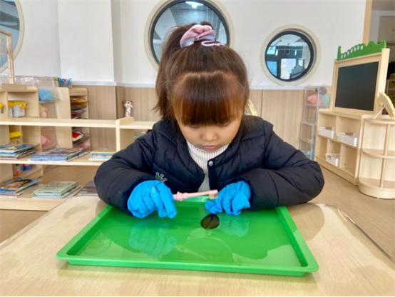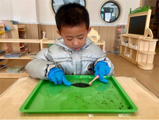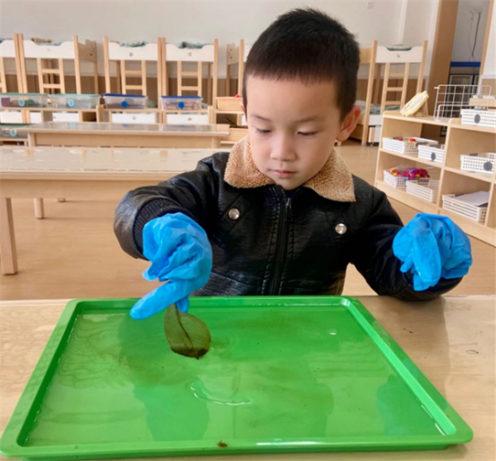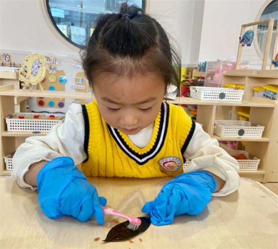 幼儿3:“我这个是广玉兰的叶子,我也刷了很久但是叶肉怎么都刷不掉呀!