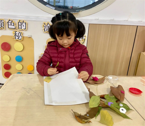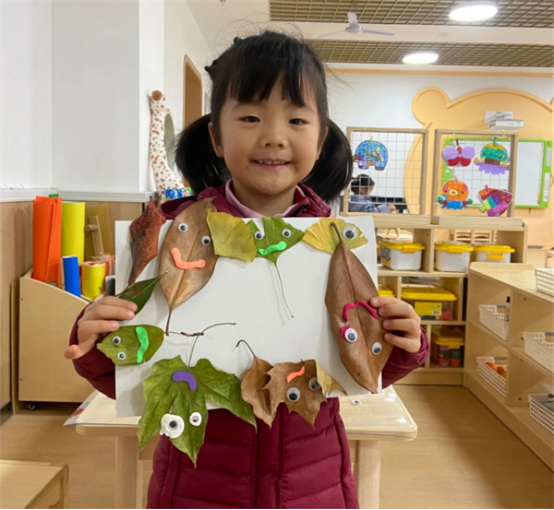 根据孩子们的兴趣,我们以“树叶”为材料开展区域活动,把叶子变成了“情绪小怪兽!”