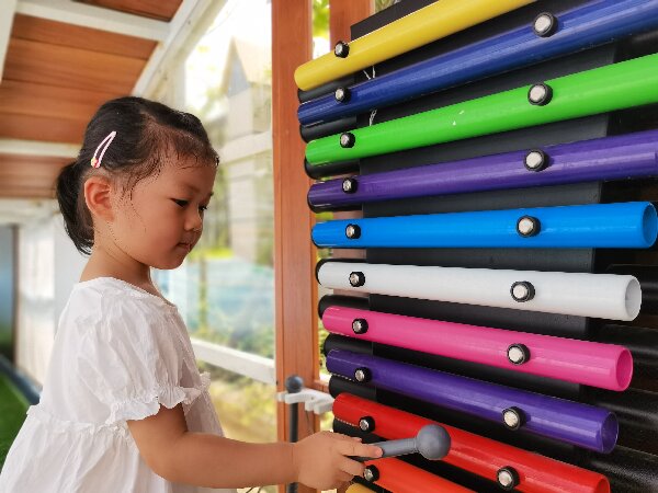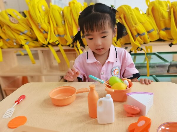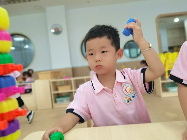 教室里有五颜六色的积木。幼儿园有可以拼出各种图案的拼图。小亭子里有活泼可爱的小兔子跟我们捉迷藏。操场上有组合滑梯、各种车辆好玩的游戏。