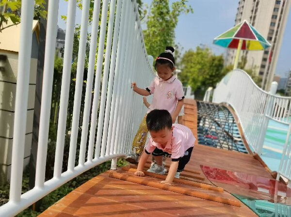 在幼儿园的日常生活中,孩子们通过相互牵手,有序地进行饮水、如厕等基本活动,独立性和成长的喜悦显而易见。
