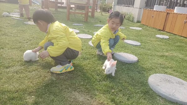 好玩的草坪:我们兴奋地奔向草坪,小兔子在这里等着我们呢!