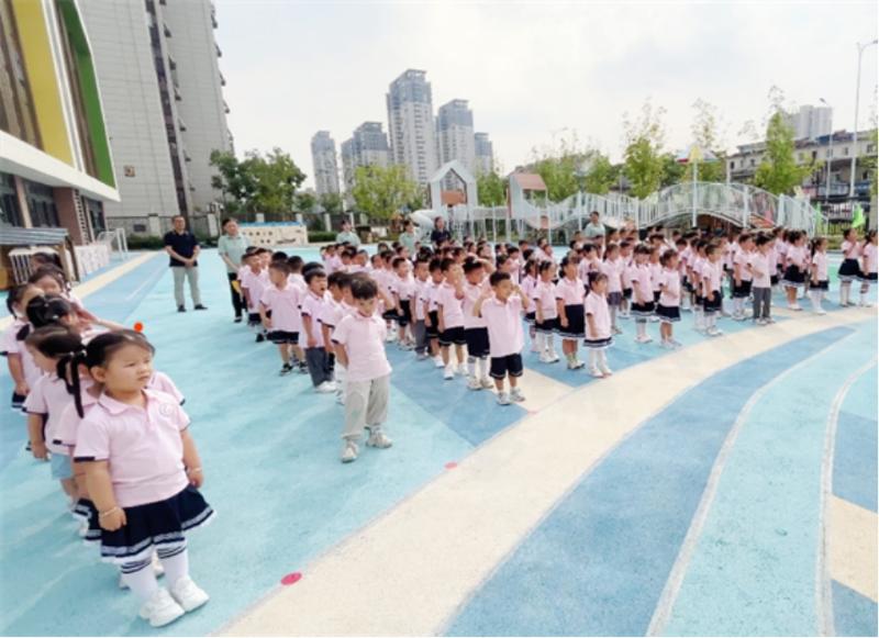 伴随着庄严的国歌,五星红旗冉冉升起。高亢的歌声唱响在幼儿园的每个角落,新学期的号角已经奏响,孩子们以饱满的精神面貌迎接新学期的到来。