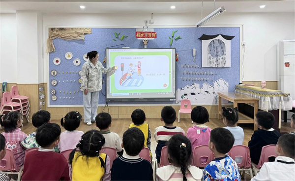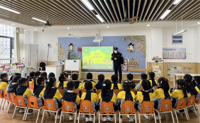 为加强幼儿园交通安全宣传教育工作,全力预防和减少道路交通事故的发生,进一步加强幼儿文明交通安全意识和自我保护意识、学会规避出行风险。教育幼儿关爱生命、拒绝交通违法行为,严防道路事故,打造平安校园。2024年4月11日,合肥市和月融汇幼儿园后勤负责蔡俊特邀请亳州路派出所民警兼法治副校长丁伯亮走进幼儿园,为幼儿开展交通安全知识宣传教育活动,引导幼儿提高交通安全风险自我防范意识和能力。
