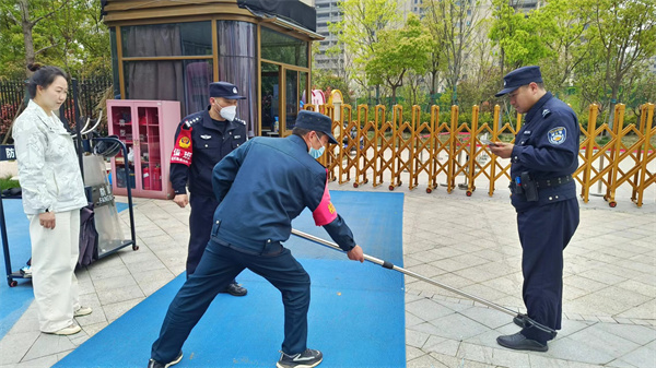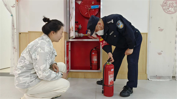 接着在蔡俊的陪同下,丁警官对园所内外的环境进行了全面的检查,对幼儿园安保器械的配备、一键报警系统运行状况、幼儿园出入登记、园内的消防设施等进行实地检查。详细查看了灭火器是否在有效期内、消防器材是否有缺损。