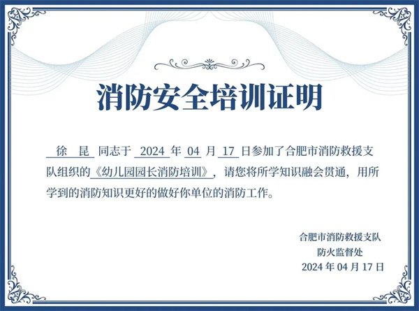 依据合肥市消防安全委员会和教育局的最新指导方针,为提升校园消防安全管理标准,2024年4月17日下午,在全市范围内举办了针对幼儿园园长和中小学校长的消防安全培训。合肥市清源融和幼儿园执行园长徐昆积极参与了此次重要的培训会议。