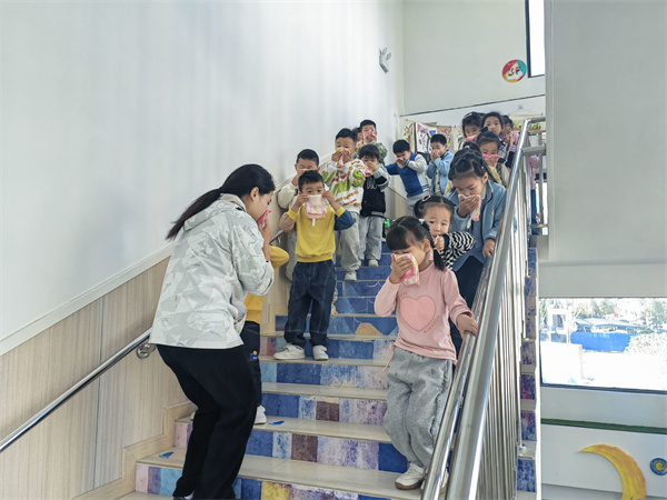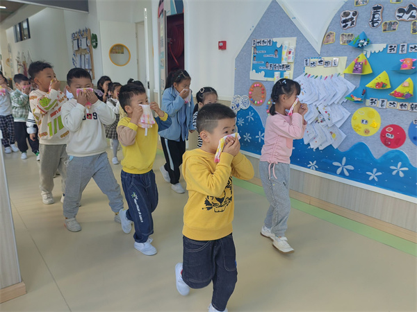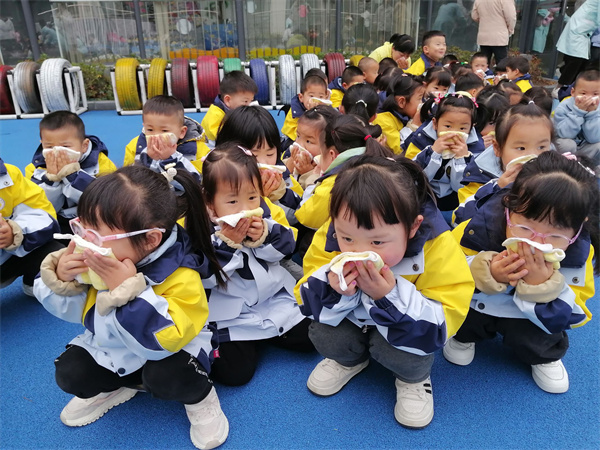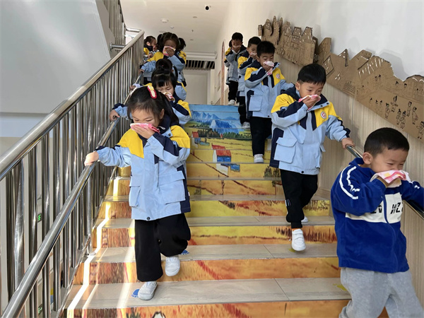 随着警报声的响起,各班幼儿在老师们的组织下用湿毛巾捂住口鼻,按照紧急疏散路线,井然有序地撤离到安全地带后,老师们迅速清点班级幼儿人数,并向总指挥汇报,确保每一位幼儿都已安全撤离。