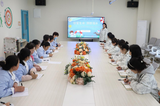幼儿的安全是幼儿园各项活动开展的前提和保障,引导幼儿树立安全意识,增强幼儿的自我保护能力,是每一位教育工作者的责任和义务。为此,合肥市麓湖融光幼儿园安全员邵雨露组织全体教职工进行了防溺水安全教育专题学习活动,强化教职工防溺水意识,增强教职工防溺水宣传教育能力,同时也提升教职工的防溺水救护能力。