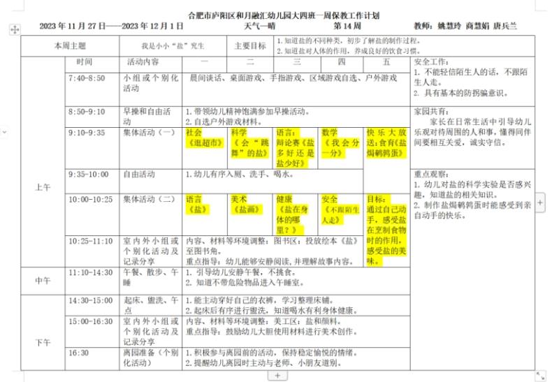 合肥市和月融汇幼儿园以食育活动为园本课程,每周一次的烘培坊食育活动则是小朋友们最为期待的,一道道美食在小朋友们手上诞生,大家都开心极了。一天上午,浩浩在制作饼的食育活动中,不小心将盐瓶打翻。一时间大家对盐的味道、形状等产生了极大的兴趣,并七嘴八舌讨论起来。老师决定带领小朋友们深入探索“盐”在生活中的作用。