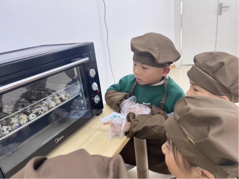 最终大家一致决定做盐焗鹌鹑蛋。鹌鹑蛋洗净,放入烤盘撒上盐和调料,预热烤箱,鹌鹑蛋烤至五分熟拿出,全部放入铁锅中焖熟。香喷喷的盐焗鹌鹑蛋就出炉了。