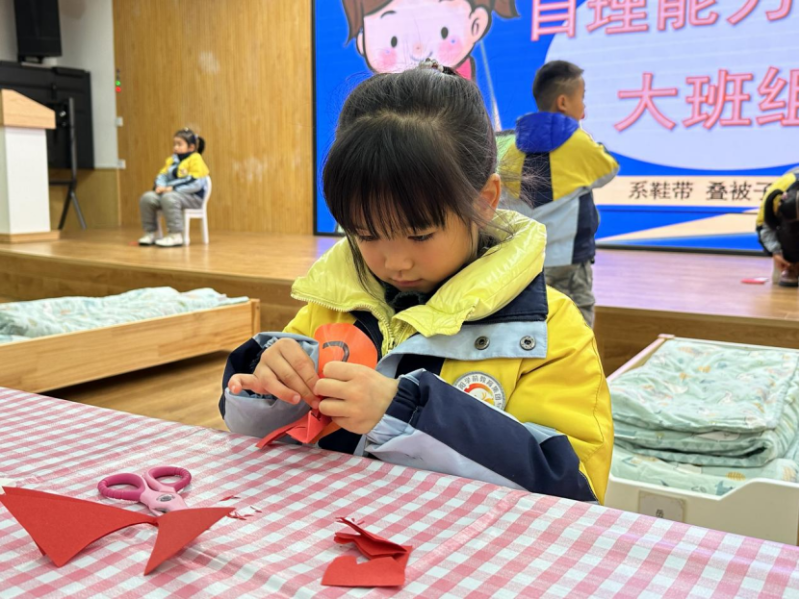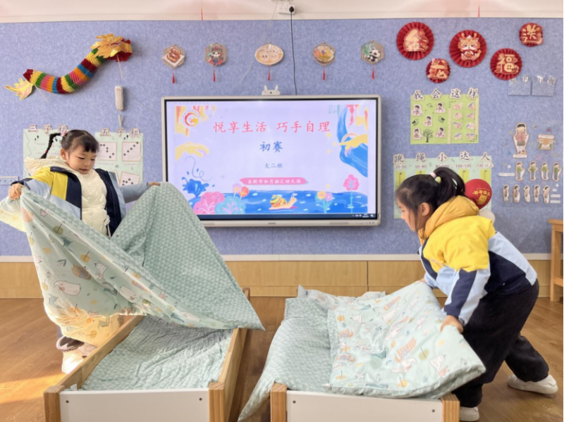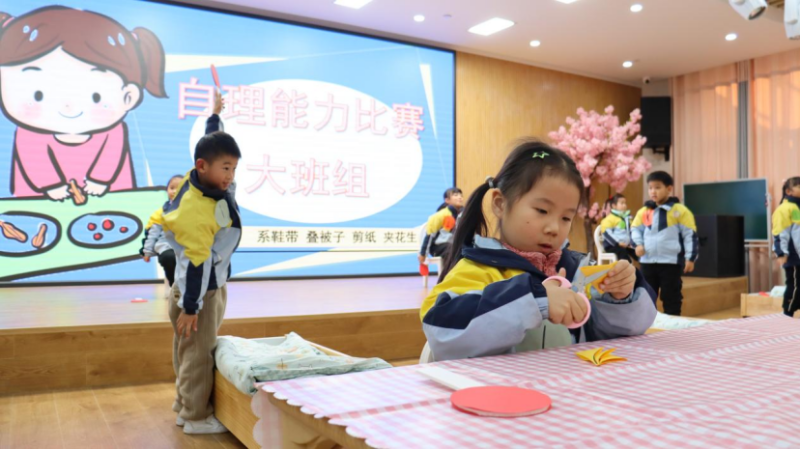 本次比赛虽然在孩子激烈比拼中结束了,但关于孩子自理能力的培养远没有结束。我们将继续深入开展幼儿自理能力培养,放手让孩子们去锻炼,让孩子学会自己的事情自己做,成为自己的小主人。合肥市和月融汇幼儿园以生活馆为特色,旨在培养“乐活、善活的活力儿童”,在获得成功中享受了幼儿园生活的快乐,在练习中促进了手部肌肉协调性和灵活性的发展。