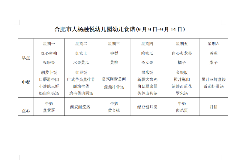 庐阳教育发展集团2024年9月9日-9月14日幼儿食谱