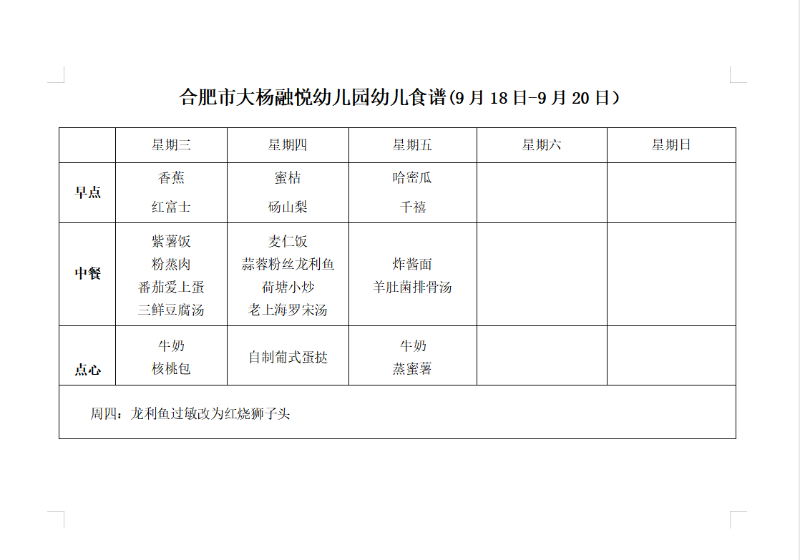 庐阳教育发展集团2024年9月18日-9月20日幼儿食谱