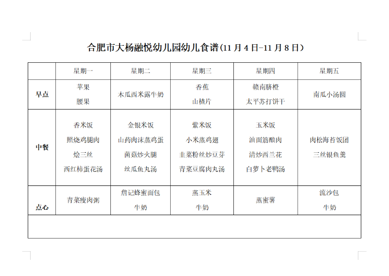 庐阳教育发展集团2024年11月4日-11月8日幼儿食谱