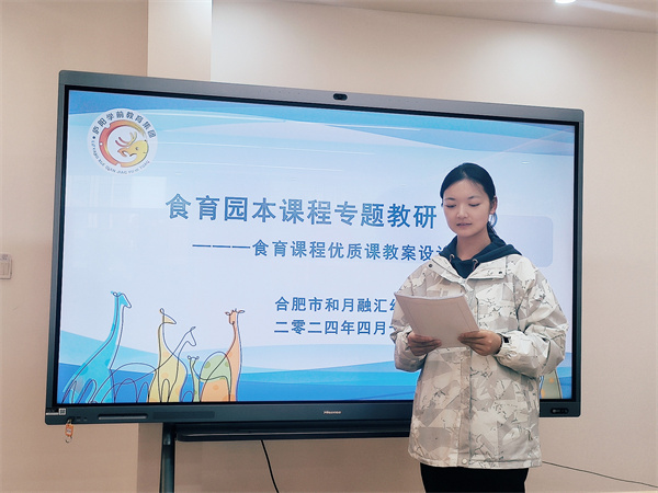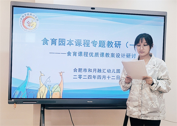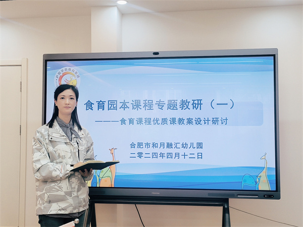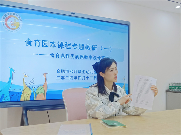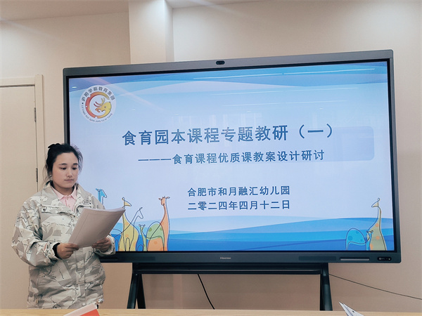 “教而不研则浅,研而不教则空”,教学与教研如同两扇翅膀,是平衡教育教学发展的经纬。为深入贯彻《3-6岁儿童学习与发展指南》精神,进一步提升教师教科研水平及教育教学的能力,同时为庐阳学前教育集团优质课竞赛活动做好充足准备。2024年4月12日,合肥市和月融汇幼儿园全体教师在业务负责赵晓艳的带领下共同参加了“食育园本课程专题教研(一)——食育课程优质课教案设计研讨活动”。