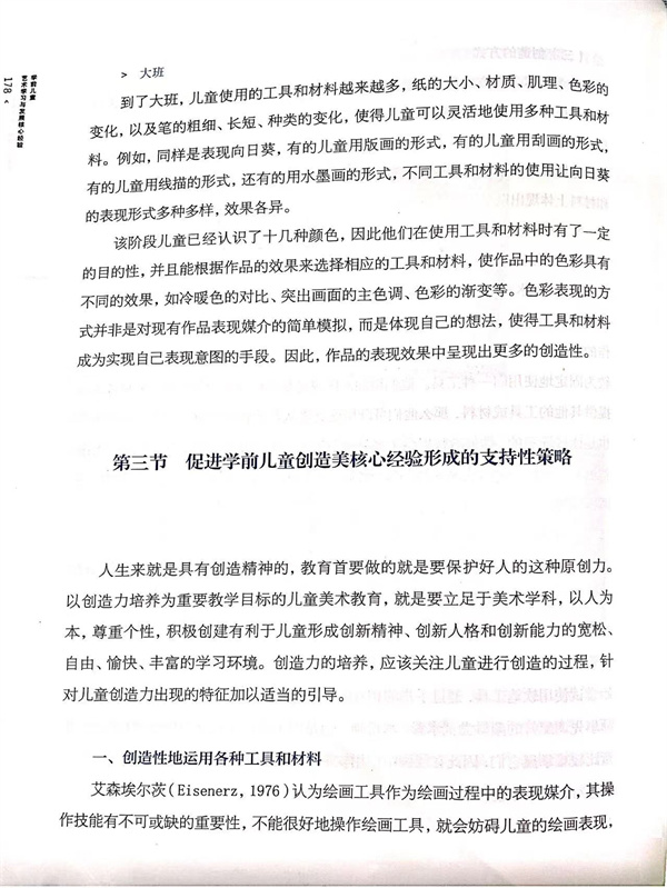 幼儿美术教育中,我们应以培养创造力为核心以美术学科为基础,以幼儿为中心,尊重每位幼儿的个性,积极营造一个有利于幼儿创新精神、创新个性和创新能力发展的宽松、自由、愉悦且资源丰富的环境。在创造力的培育过程中,教师应重视幼儿的创造行为,针对幼儿在创造过程中展现的特点,给予恰当的引导和支持。