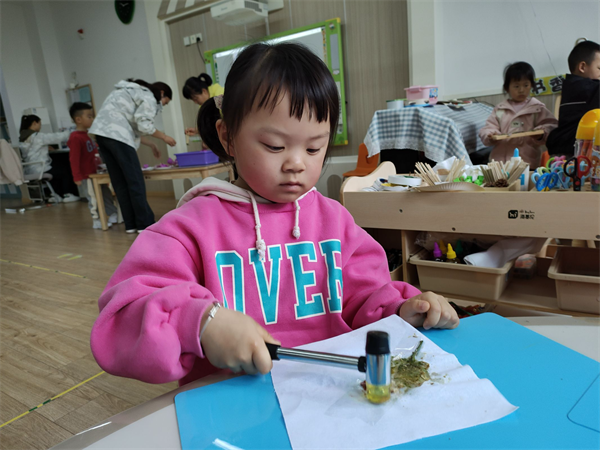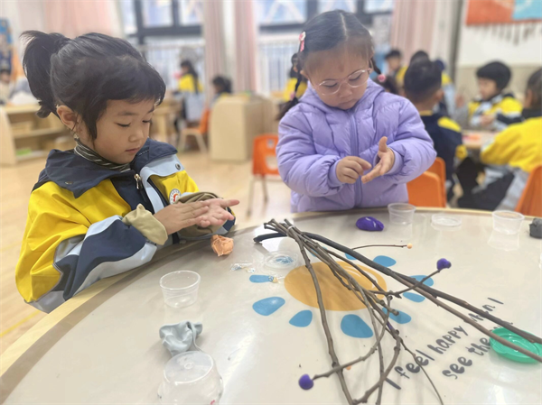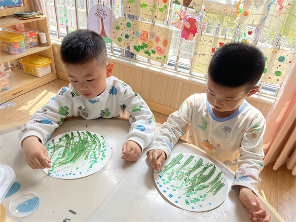 在鼓励幼儿参与艺术活动的同时,教师还引导幼儿使用身边自然和日常物品作为材料,例如,树叶、树枝、植物的果实和种子、石头等自然元素,以及各种生活物品,都可以成为幼儿创作的素材。在艺术创作中,这些材料不仅可以单独使用,还可以相互结合,创造出多样化和层次丰富的作品。