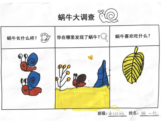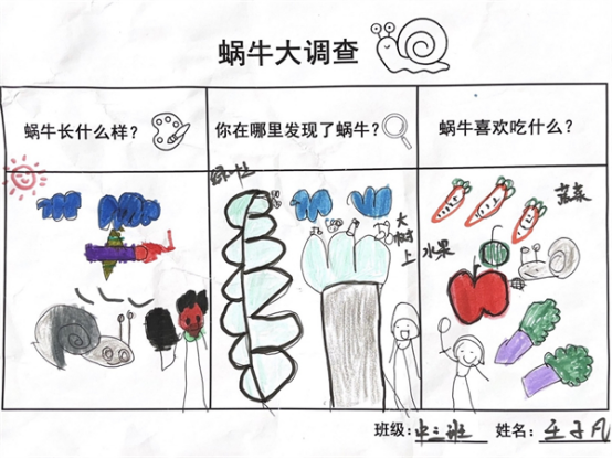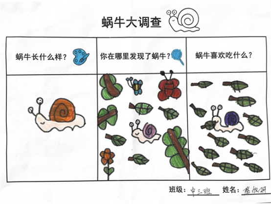 关于蜗牛的秘密,孩子们还有许多的疑问。为了满足孩子们的求知欲望和好奇心,我们开展了调查活动,鼓励孩子们和家长一起完成。