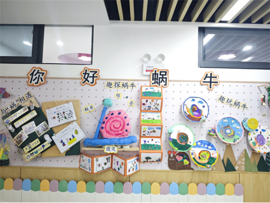 孩子们叽叽喳喳地讨论起来,围观的人也越来越多,这只“蜗牛”着实吸引了一批粉丝,蜗牛喜欢吃什么?喜欢住在哪?一连串的问题随之产生。因此,合肥市和月融汇幼儿园中三班依据中班幼儿的年龄特点,开展了班本特色课程《你好!蜗牛》,蜗牛和孩子们的故事,在悄悄地发生。