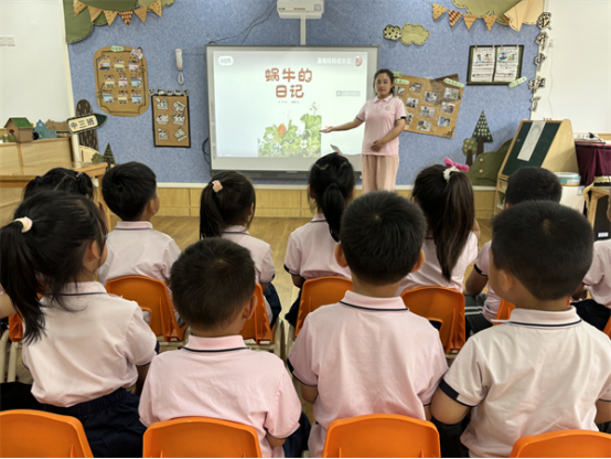 幼儿通过集体阅读《蜗牛日记》绘本故事,了解到蜗牛的习性和特点,比如蜗牛每次能产100颗卵;蜗牛出生在潮湿的土地上;蜗牛有壳,能保护自己柔软的身体;蜗牛只在夜间出来活动;蜗牛有很多牙齿;蜗牛的天敌是什么;蜗牛能分泌亮闪闪的黏液等等。让幼儿爱上阅读、爱上自然、爱上科学。