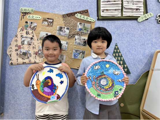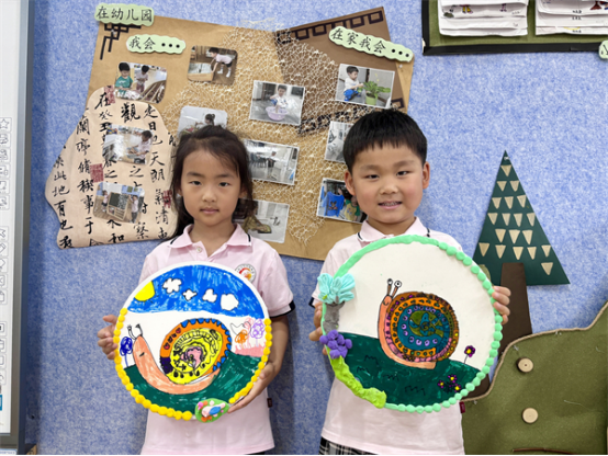 幼儿通过和蜗牛的相处,对蜗牛的喜爱日益剧增,这天老师们带领幼儿创作了一幅幅蜗牛主题绘画作品——“蜗牛的花园”,幼儿发挥想象,使用了黏土、毛球等多种材料进行添画和装饰,快来看看幼儿的作品吧!