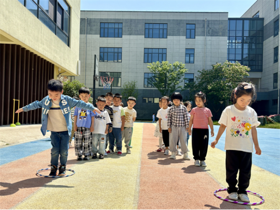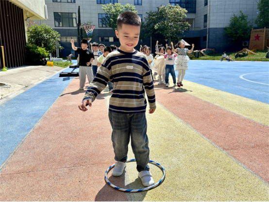 幼儿自由分组,每组一个呼啦圈,幼儿站在呼啦圈里。听到开始的口令,以蜗牛赛跑的方式快速挪动呼啦圈,最先到达终点者获胜。考验孩子们身体协调能力的时候到了!