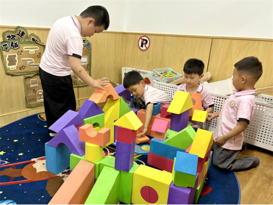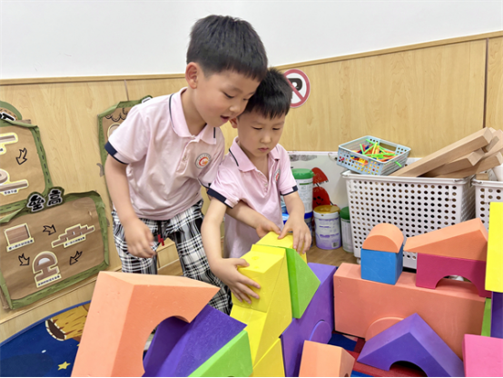 随着对蜗牛探究的深入,幼儿不自觉地就将蜗牛带入到自己的区域活动中。这不,今天的区域活动可热闹了,建构区里,幼儿忙着给蜗牛搭建新家呢。
