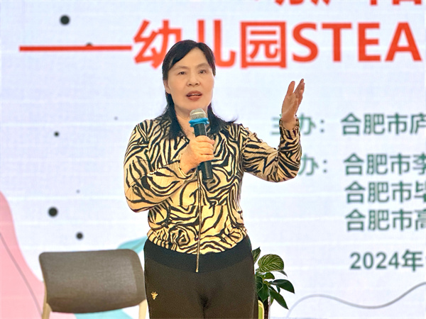 合肥市庐阳区教育体育局幼教教研员方明惠首先向多有参与分享以及在幕后默默付出的老师们表达了诚挚的感谢,并对今天上台分享的老师们给予了高度的赞扬。她指出,通过此次STEAM教研活动,STEAM驾驭的理念得以深入一线,激发了广大幼教同仁们的热情与共鸣。