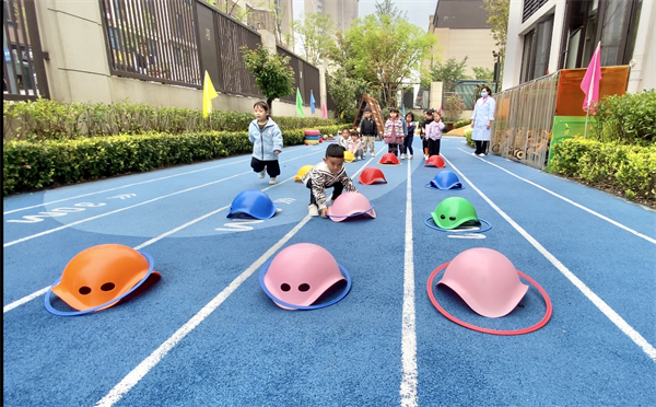 游戏开始了!第一个游戏是“解救小乌龟”。只见场地中央摆放着几排可爱的小乌龟,它们被圈圈套住了,动弹不得。小朋友们兴奋地跑向小乌龟,他们需要将塑料圆圈一个一个地拿掉,才能解救出受困的小乌龟。孩子们争先恐后地行动起来,小心翼翼地搬动圆圈。在大家的共同努力下,小乌龟们终于重获自由,小朋友们也露出了喜悦的笑容。