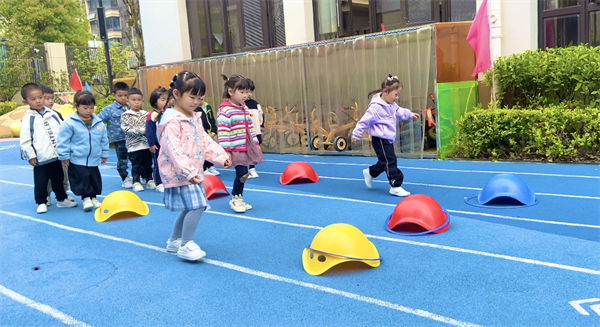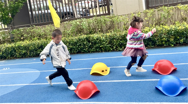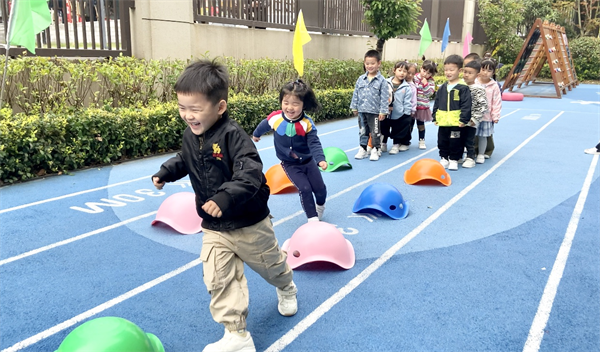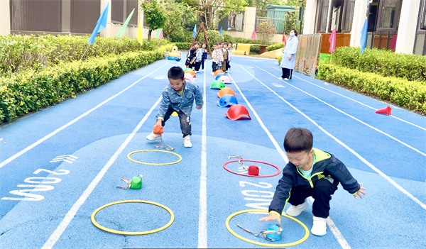 前二个游戏是“抢宝座”。小朋友们需要绕开面前的障碍物,比比谁最先坐到远处的宝座上。这个游戏考验了孩子们的反应速度和平衡感。只见小朋友们摩拳擦掌,蓄势待发。随着老师的一声令下,他们迅速启动,灵活地躲避着障碍,奋力向宝座冲刺。在激烈的竞争中,孩子们不仅锻炼了身体,还学会了如何在压力下保持冷静和专注。