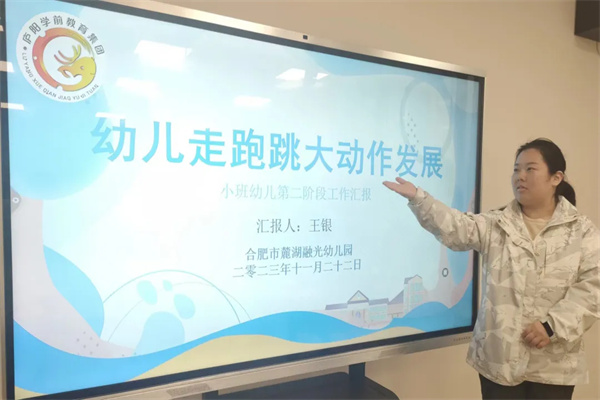 在教研过程中,小班王银老师根据幼儿的年龄特点,通过观察幼儿走、跑、跳案例中,教师强调以幼儿的视角,放手让幼儿进行运动性游戏。其中针对教师放手后出现的问题进行分析与总结。最后还结合《指南》与《学前教育健康学习与发展核心经验》,对幼儿的第三阶段走、跑、跳发展的预设进行了规划。