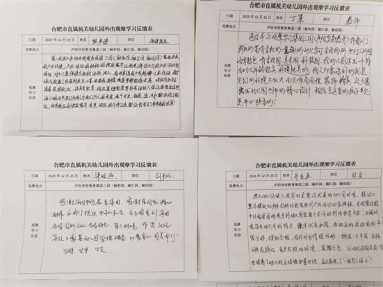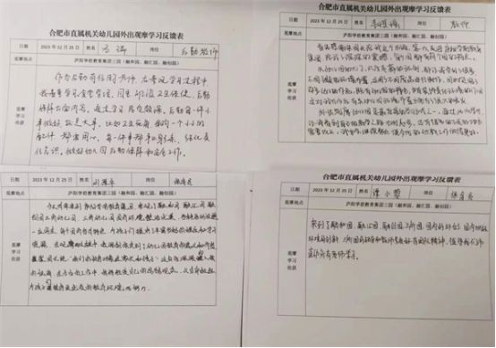 市直幼的老师们深感受益匪浅,纷纷表示庐阳学前教育集团的精神眼见为实,领教精度,严格而柔情的办园理念,严谨而温暖的园所管理,无不体现出高端时尚大气的风格,一园一品,一园一特,一园一馆将庐阳学前的精神带回园内,并在朱晨曦园长的领导下,发扬光大。
