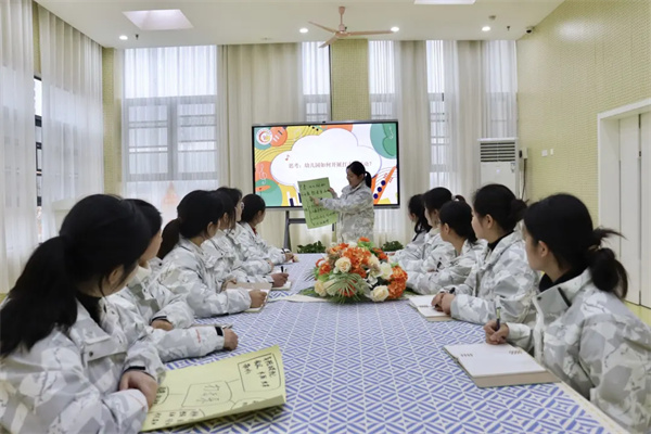 为帮助教师更好地梳理打击乐活动的核心经验,提供游戏化的组织策略,丰富有效的师幼互动策略,提升音乐活动的实施能力。在教研组长李一凡的带领下展开头脑风暴,共同研讨《开展打击乐》共思、共研、共成长,依据各年龄段幼儿的身心发展水平,如何将打击乐活动渗透到幼儿活动中。整个过程中,教师们表现出极高的热情,积极交流讨论。