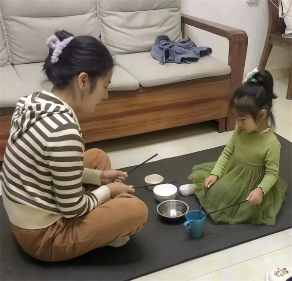 3. 家长尽可能抽出时间陪幼儿一起玩音乐游戏,利用家中可发声物品探索不同的音乐节奏,使幼儿在音乐游戏中充分感受家庭欢乐的氛围及游戏的乐趣,进一步激发