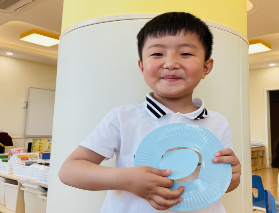 阳阳:“把纸盘的中间剪一个洞,有洞就可以吹出长长的泡泡。”