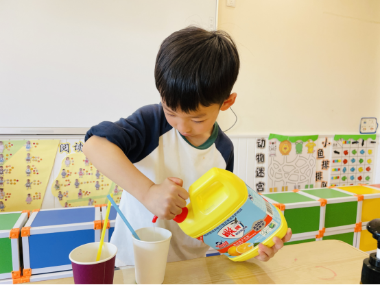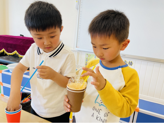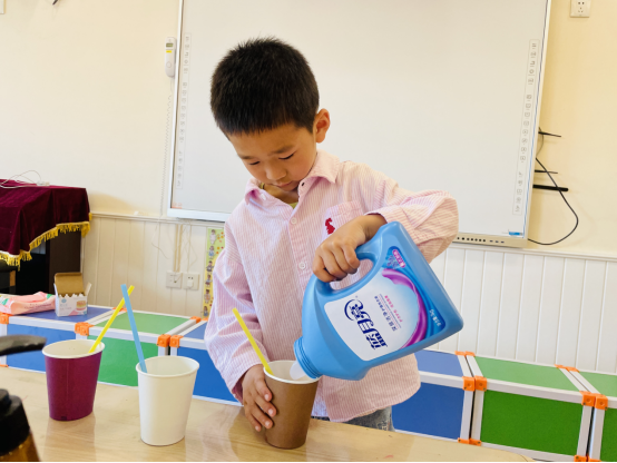毅毅:“我可以用水管制作一个手持的泡泡器,还会飞在天上。”