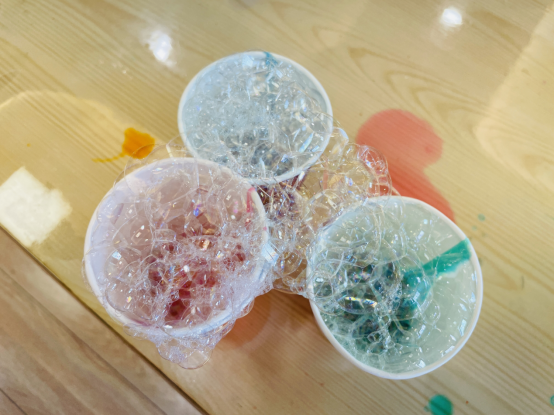 教师和幼儿都需要在感知、探索、实践和分享中,不断提高发现问题、分析问题、解决问题的能力,并体验着泡泡带来的趣味。虽然关于“泡泡”的课程已经结尾,但幼儿探索的脚步没有停止,他们的学习和发展也在不断延续……