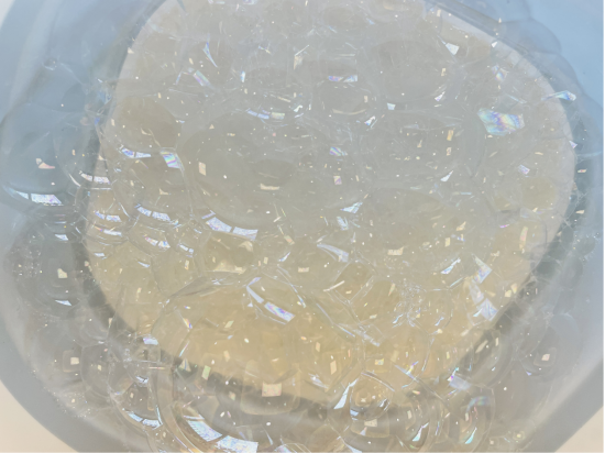 水、洗洁精、白糖,搅拌,直至容器里面出现密密麻麻的泡泡。