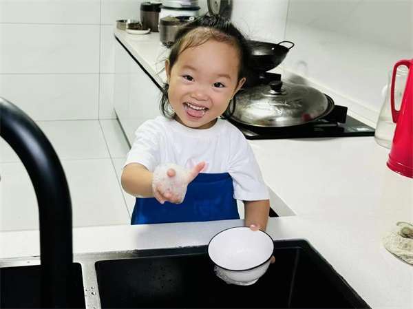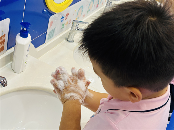 近期,我经常发现孩子们在盥洗的时间比较久,悄悄走近一看,他们正在搓泡泡,并且很开心的相互分享:“哇,你看,我的手上有泡泡”,“我的手上也有泡泡,还有很大的泡泡。”,原来是手上的泡泡让他们产生了兴趣。