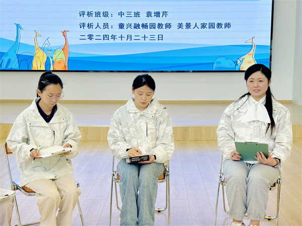 教而不研则浅,研而不思则空。在半日观摩活动结束后,执教老师先针对自己活动开展的情况进行了总结反思,观摩教师结合半日活动开展情况,对各个环节进行深入剖析,说亮点找不足,并围绕“师幼互动关系”进行了深入研讨,并发表了自己点观点。