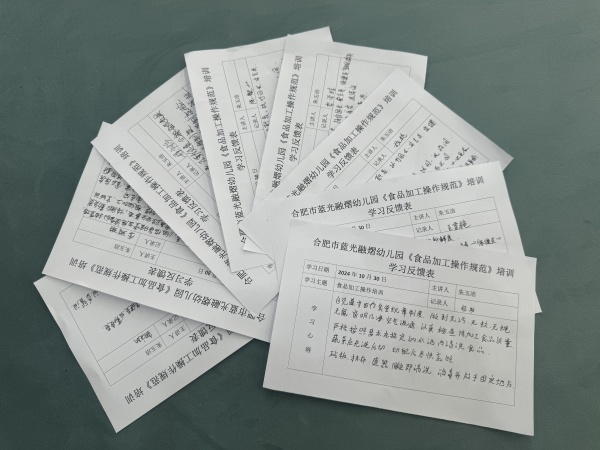 食堂工作人员和保育老师们在培训中认真听、仔细学,并做好相关记录,将食品安全铭记于心,进一步强化了食品安全责任意识,明晰岗位职责,规范操作流程,筑牢幼儿园食品安全防线。