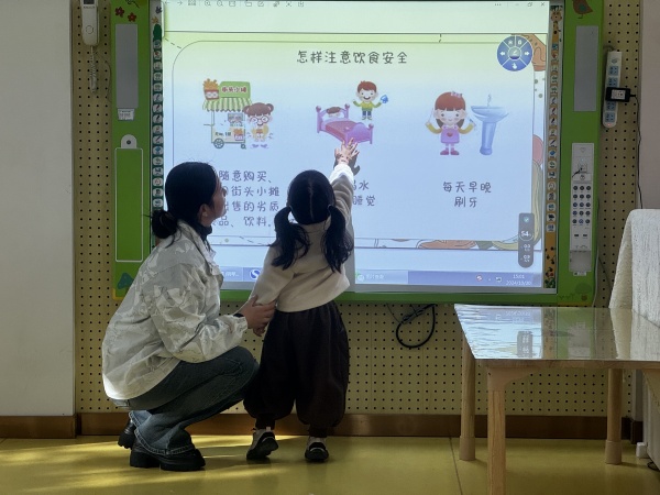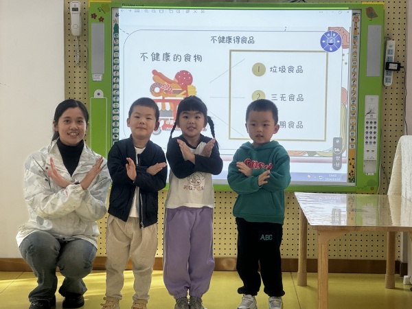 在食品安全教育活动中,班级老师利用视频、图片等方式,生动有趣的给幼儿讲解食品安全知识,引导幼儿从生活出发,发现生活中的问题食品、垃圾食品,培养幼儿良好的饮食卫生习惯。