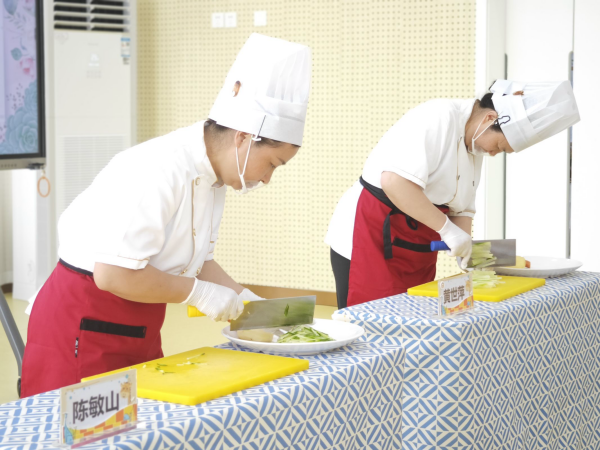 为进一步提高食堂从业人员专业技能,提高食品安全工作水平,幼儿园还开展食堂从业人员技能实操展示活动,整个过程两名食堂工作人员认真操作,严格遵守步骤规范。
