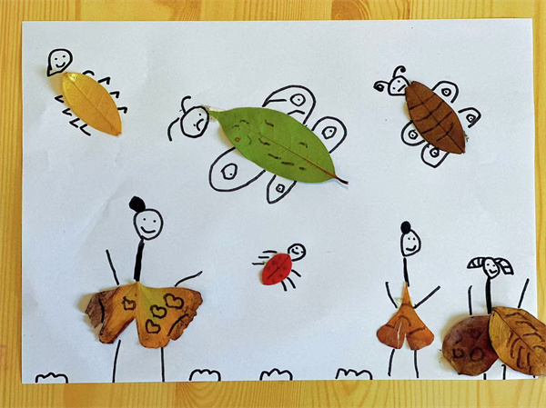 幼儿发挥创造力,将收集到的树叶制作成有趣的艺术品。例如,将树叶拼贴成一幅幅美丽的风景画,或者用树叶制作出各种动物和人物的形状。通过这样的手工活动,幼儿不仅能够进一步了解树叶的形状和颜色,还能提高他们的动手能力和艺术创造力。