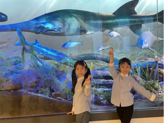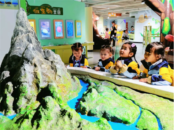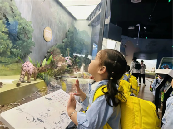 “哇,看那边的大恐龙!”走进自然展厅,小朋友们仿佛置身于真实的自然环境中,北极展区的冰天雪地和热带雨林区的葱郁绿意让人仿佛穿越了时空。孩子们惊叹于北极光的绚丽,也在热带雨林的模拟瀑布声中感受到了大自然的神奇。