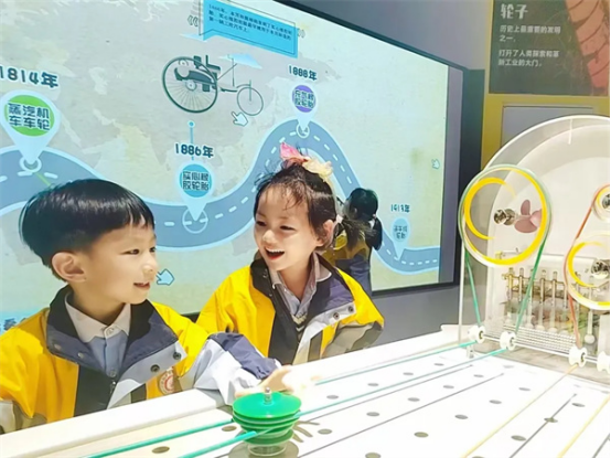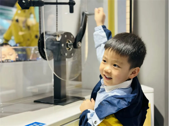 这里展示了很多物理知识,虽然有些内容听起来很难懂,但是在老师生动地解释下,孩子们也慢慢明白了一些简单的道理。比如通过滑轮系统,他们惊讶地发现自己竟然可以轻松拉起那么重的东西!