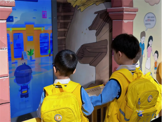 在“安宁”展厅中,幼儿身临其境地体验地震、雪崩、海啸等自然灾害的现象,了解到了人类凭借知识与技术进行有效应对、化险为夷的好方法。原来,生活中有这么多需要注意的安全事项呢!